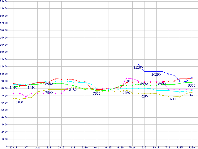 メモリ主要製品(最安値5千円~1万円未満)の最安値推移