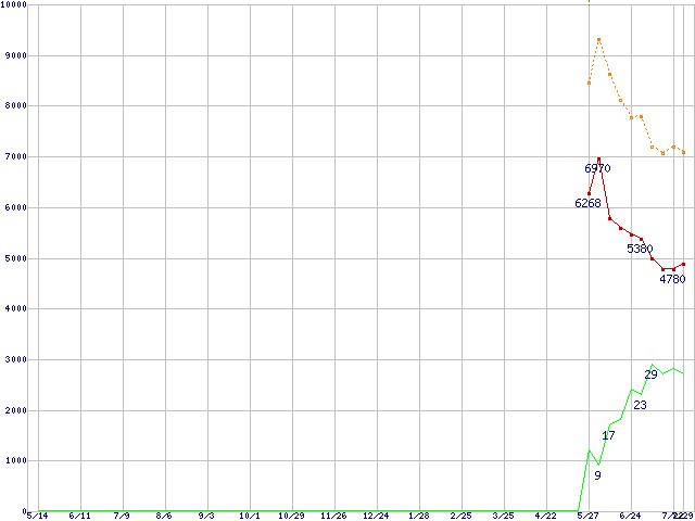 | PC2-6400 512MBの価格推移 | | | (2005年5月14日~2006年7月29日) |