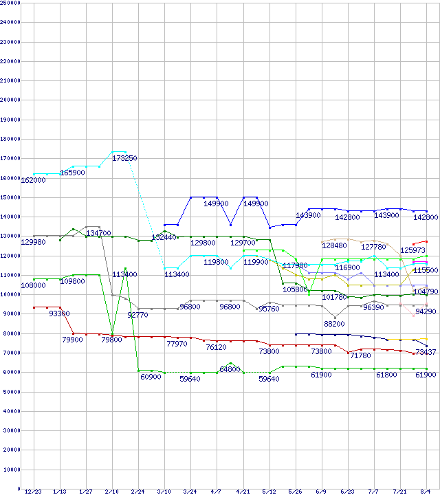 CPU主要製品(最安値3万円~6万円未満)の最安値推移