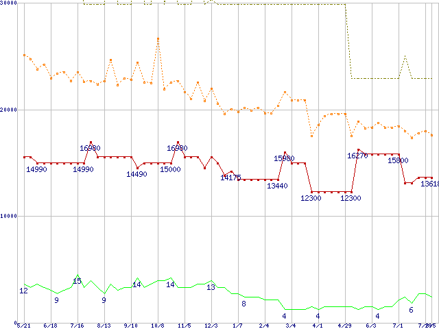 PC3200(DDR400) DDR SDRAM DIMM ECC対応 Registeredタイプの最安値推移