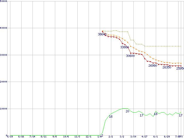 | 6H500F0 (500GB)の価格推移 | | | (2005年5月19日~2006年8月3日) |