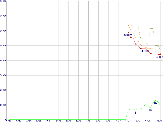 | ST3750640AS (750GB,16MB)の価格推移 | | | (2005年5月19日~2006年8月3日) |