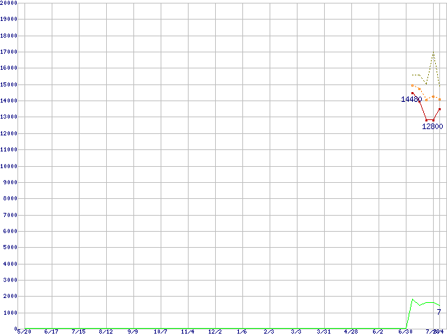 | Sempron 3200+ (1.8GHz,L2 128KB,TDP35W)の価格推移 | | | (2005年5月20日~2006年8月4日) |