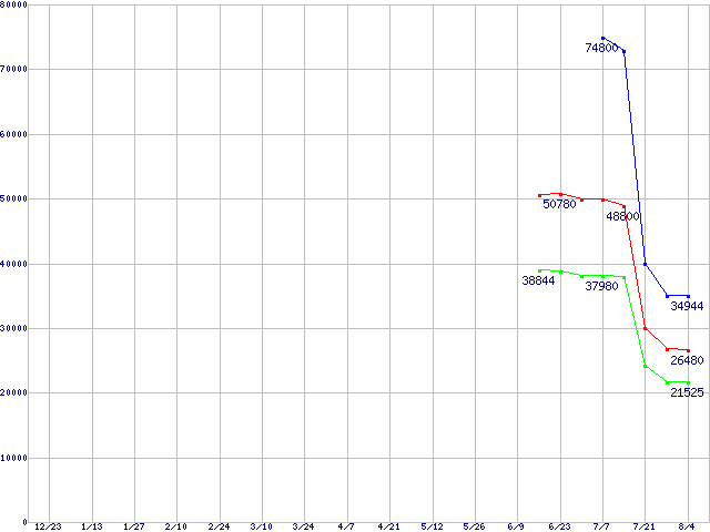 Socket AM2 (FSB 1000MHz,Dual Core,TDP65W)の最安値推移