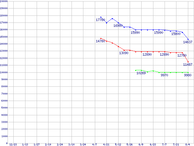 Socket 478 (FSB 533MHz,L2 256KB)の最安値推移