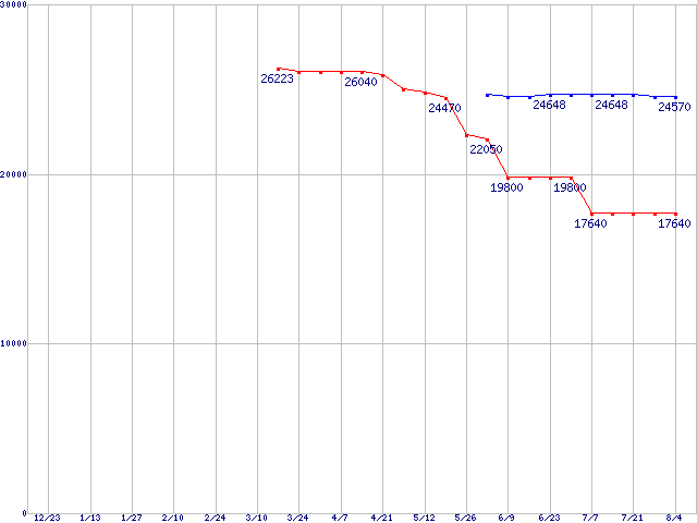 Socket 754 (FSB 800MHz,64bit対応)の最安値推移