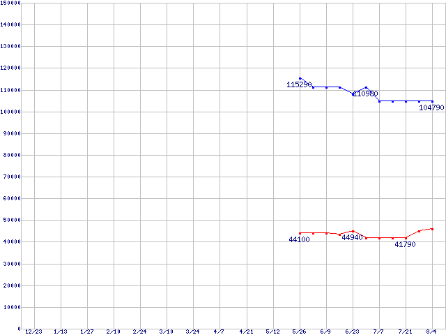LGA 771(FSB 1066MHz,Dual Core,L2 4MB)の最安値推移