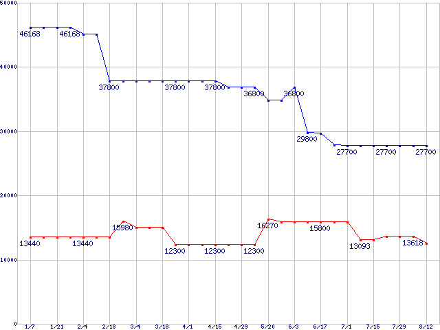メモリ主要製品(最安値5千円~1万円未満)の最安値推移