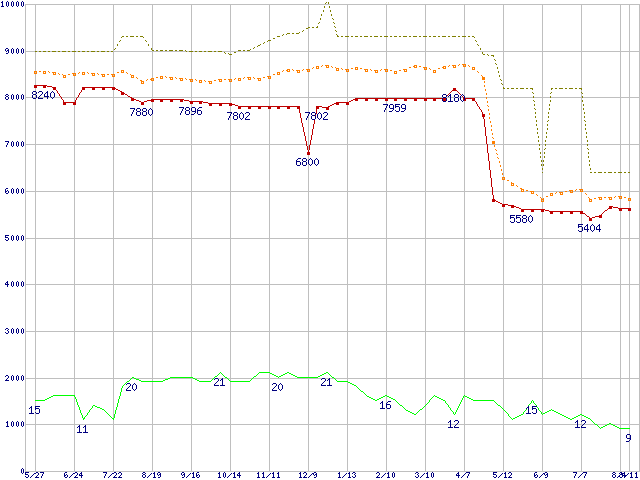 | Celeron D 325 (2.53GHz)の価格推移 | | | (2005年5月27日~2006年8月11日) |