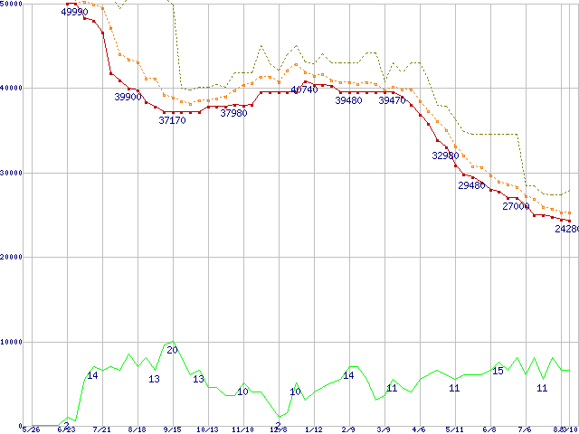 | HDS725050KLA360 (500GB,16MB)の価格推移 | | | (2005年5月26日~2006年8月10日) |