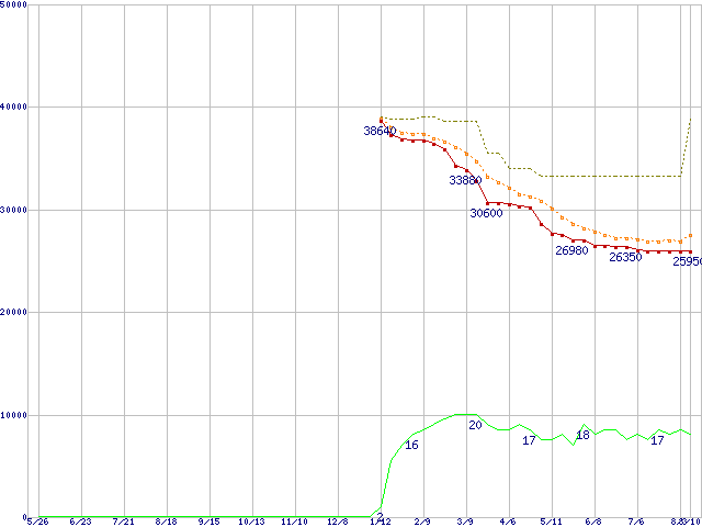 | 6H500F0 (500GB)の価格推移 | | | (2005年5月26日~2006年8月10日) |