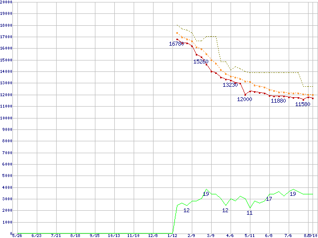 | 7V300F0 (300GB)の価格推移 | | | (2005年5月26日~2006年8月10日) |