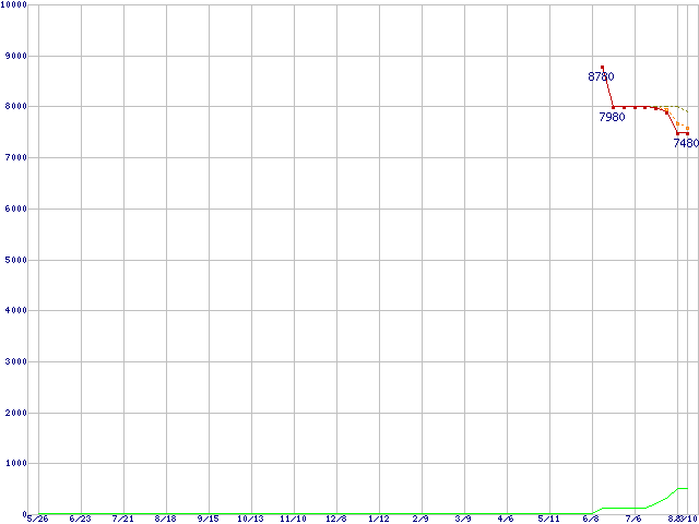 | ST3160811AS (160GB,8MB)の価格推移 | | | (2005年5月26日~2006年8月10日) |