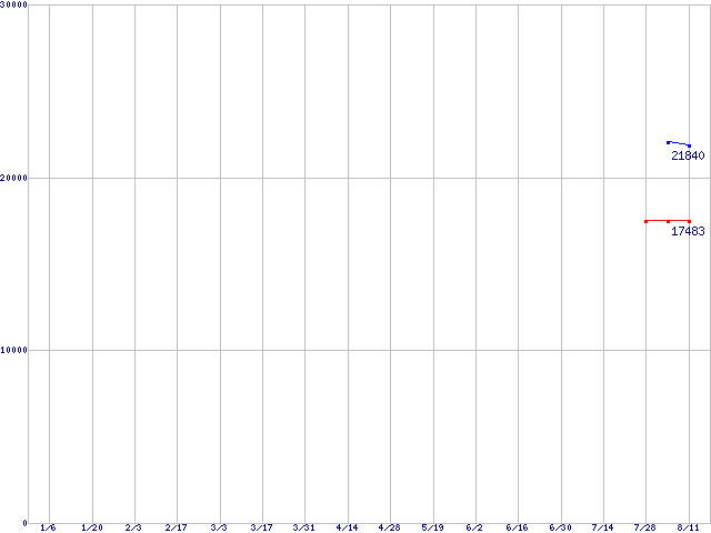 | LGA 775 (FSB 800MHz,L2 2MB×2,Dual Core,EM64T対応)の最安値推移 | | | (2006年1月6日~2006年8月11日) |