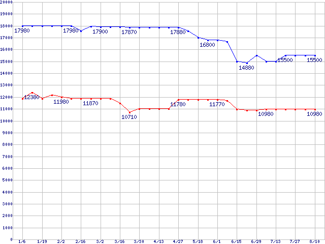 WD Raptor (10000rpm,Serial ATA/150,8MB)の最安値推移
