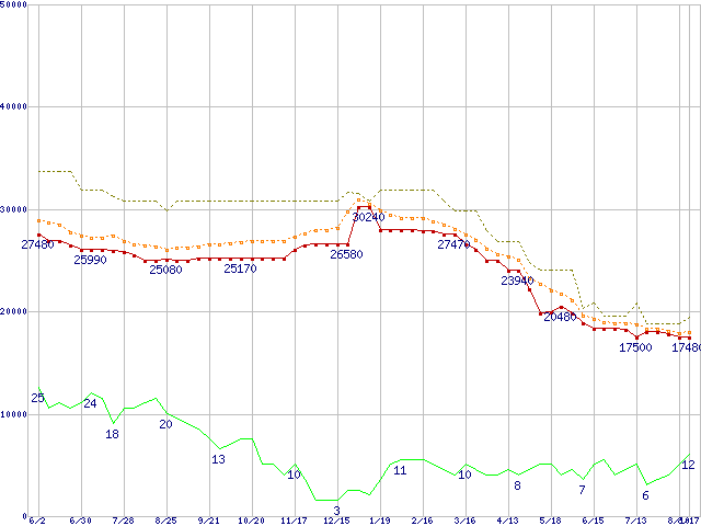| HDS724040KLAT80 (400GB,8MB)の価格推移 | | | (2005年6月2日~2006年8月17日) |