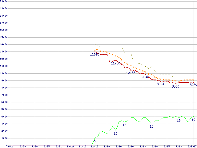 | 6V250F0 (250GB,16MB)の価格推移 | | | (2005年6月2日~2006年8月17日) |