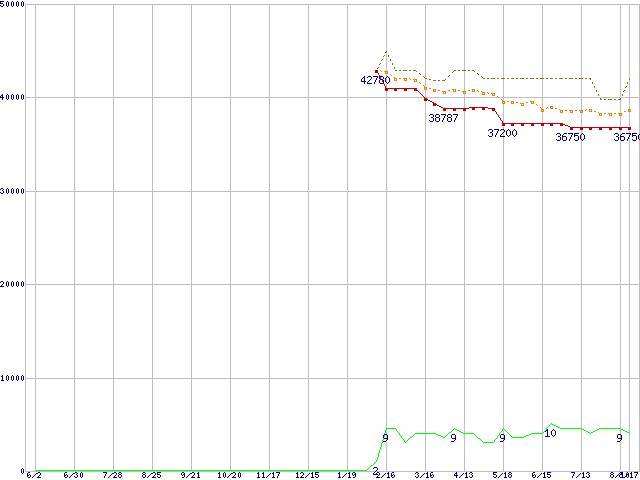 | WD1500AHFD (150.0GB)の価格推移 | | | (2005年6月2日~2006年8月17日) |
