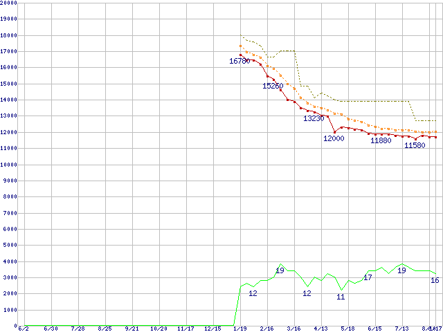 | 7V300F0 (300GB)の価格推移 | | | (2005年6月2日~2006年8月17日) |