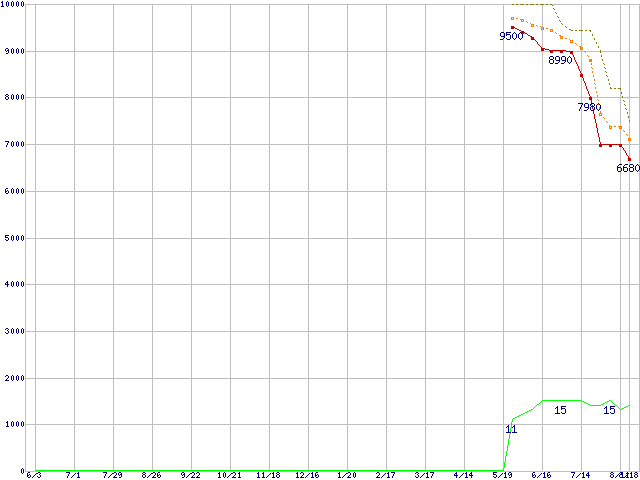 | Sempron 3000+ (1.6GHz,L2 256KB)の価格推移 | | | (2005年6月3日~2006年8月18日) |