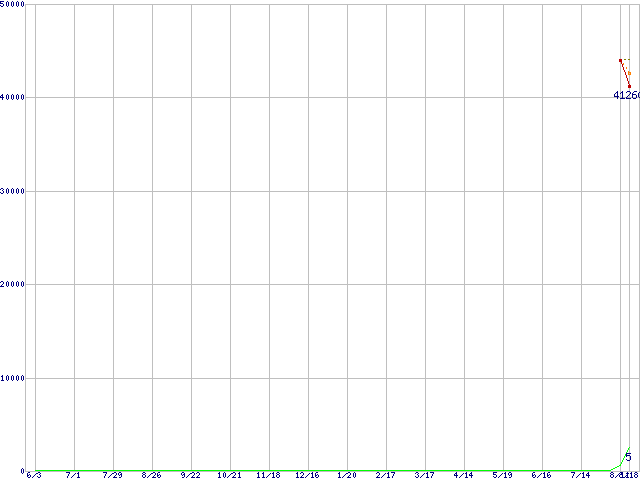 | Core 2 Duo E6600 (2.40GHz,L2 4MB)の価格推移 | | | (2005年6月3日~2006年8月18日) |