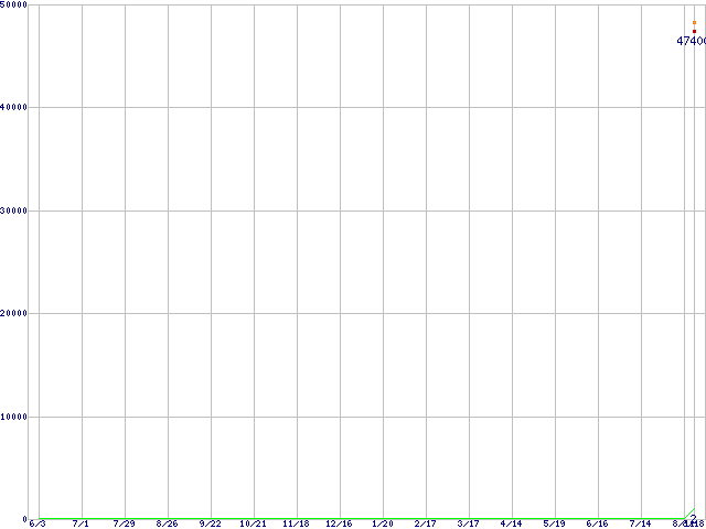 ※このグラフは過去のデータも税率5%相当に調整した税込み相当額のグラフです。 税率変更や、総額表示方式導入(2004年4月)の影響は除いています。 | | | ●凡例 | 最安値 (点線部は販売店未確認 または未調査) | 平均値 | 最高値 | ショップ数 |