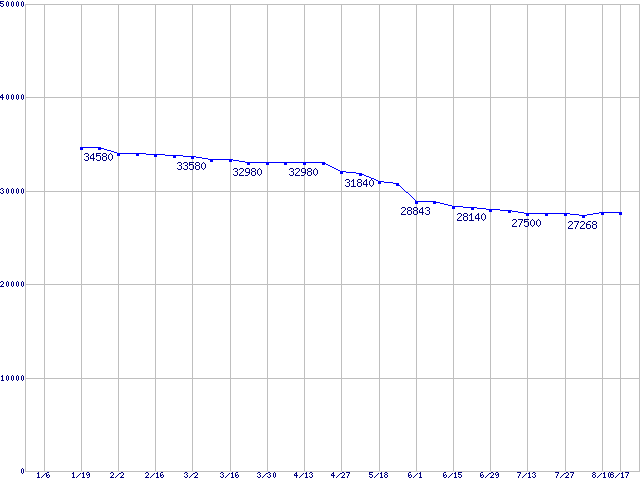 WD Raptor (10000rpm,Serial ATA/150,16MB,TLER)の最安値推移