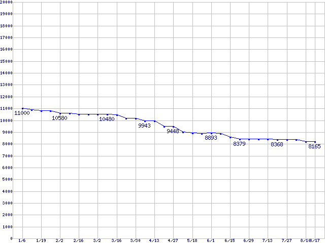 | WD Caviar[Special Edition] (7200rpm,Ultra ATA/100,8MB)の最安値推移 | | | (2006年1月6日~2006年8月17日) |