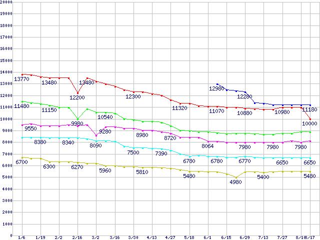 | DiamondMax 10 (7200rpm,Ultra ATA/133,RoHS指令準拠)の最安値推移 | | | (2006年1月6日~2006年8月17日) |