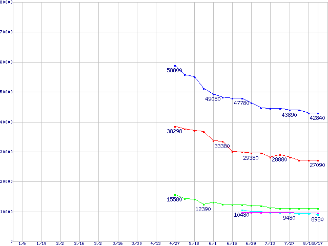 | Barracuda 7200.10 (7200rpm,Serial ATA II/3Gbps)の最安値推移 | | | (2006年1月6日~2006年8月17日) |