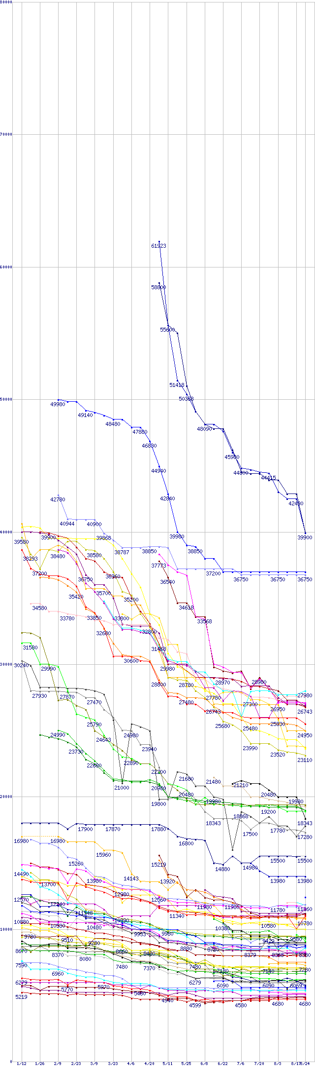 ※製品名をクリックすると個別のグラフを表示します ※点線部は販売店が確認できなかった、または調査データがないことを示します |