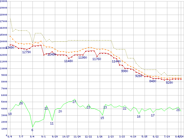 | HDT722525DLA380 (250GB,8MB)の価格推移 | | | (2005年6月9日~2006年8月24日) |