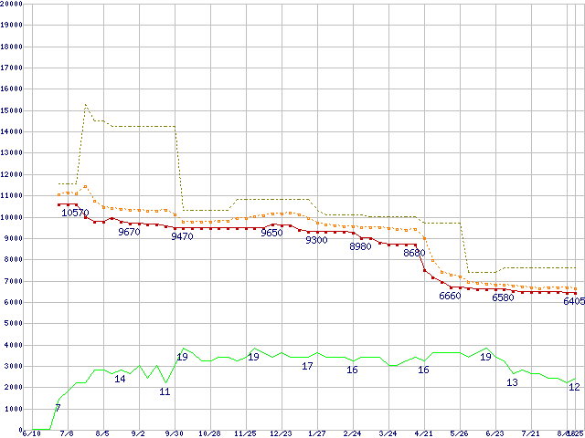 | Celeron D 336 (2.80GHz)の価格推移 | | | (2005年6月10日~2006年8月25日) |