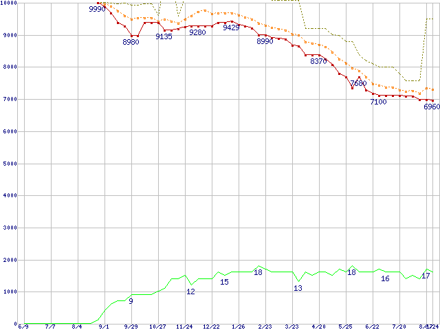 | ST3160812A (160GB,8MB)の価格推移 | | | (2005年6月9日~2006年8月24日) |