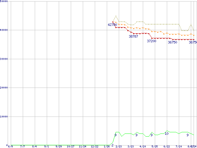 | WD1500AHFD (150.0GB)の価格推移 | | | (2005年6月9日~2006年8月24日) |