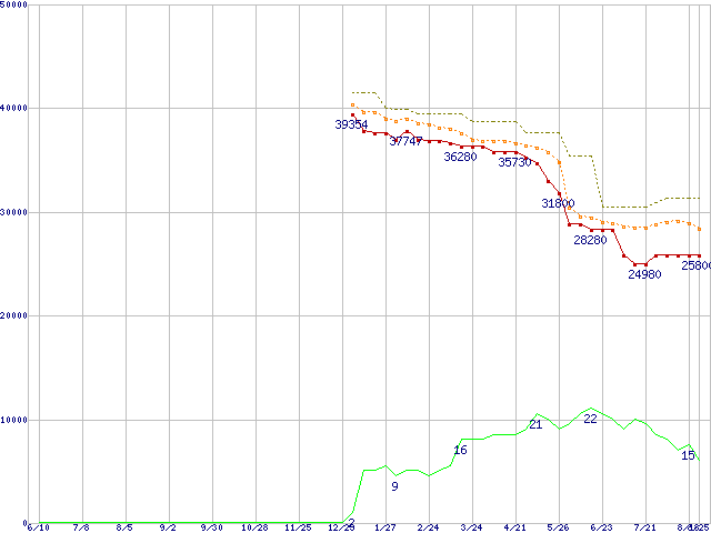 | Core Duo T2400 (1.83GHz)の価格推移 | | | (2005年6月10日~2006年8月25日) |
