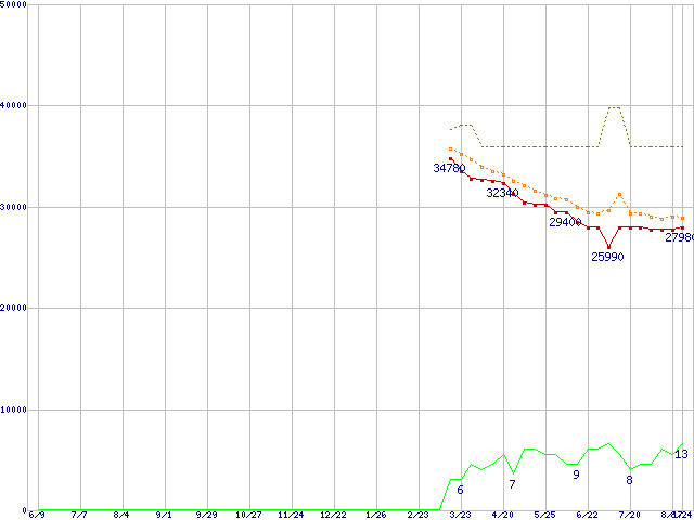 | 7H500F0 (500GB)の価格推移 | | | (2005年6月9日~2006年8月24日) |