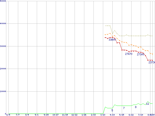 | WD5000KS (500GB)の価格推移 | | | (2005年6月9日~2006年8月24日) |