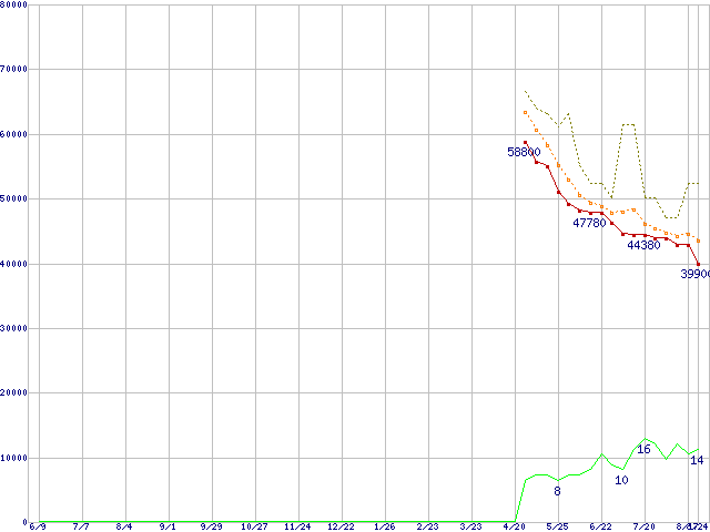| ST3750640AS (750GB,16MB)の価格推移 | | | (2005年6月9日~2006年8月24日) |