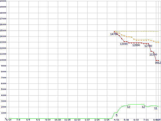 | Celeron M 420 (1.6GHz)の価格推移 | | | (2005年6月10日~2006年8月25日) |