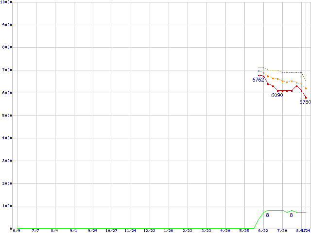 | HDS721612PLA380 (120GB,8MB)の価格推移 | | | (2005年6月9日~2006年8月24日) |