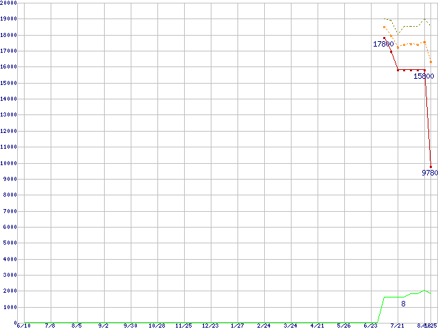 | Sempron 3400+ (1.8GHz,L2 256KB,TDP35W)の価格推移 | | | (2005年6月10日~2006年8月25日) |