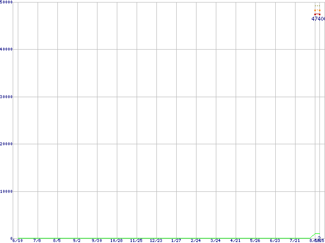 ※このグラフは過去のデータも税率5%相当に調整した税込み相当額のグラフです。 税率変更や、総額表示方式導入(2004年4月)の影響は除いています。 | | | ●凡例 | 最安値 (点線部は販売店未確認 または未調査) | 平均値 | 最高値 | ショップ数 |