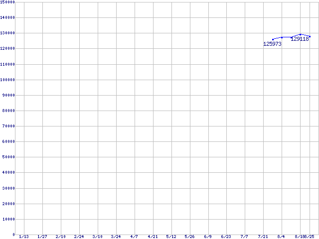 | LGA 775 (FSB 1066MHz,L2 4MB,Dual Core,EM64T対応)の最安値推移 | | | (2006年1月13日~2006年8月25日) |