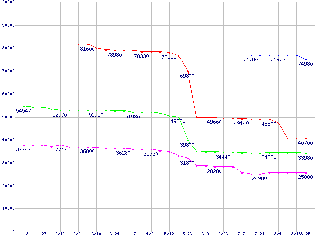 Socket AM2 (FSB 800MHz,TDP35W)の最安値推移