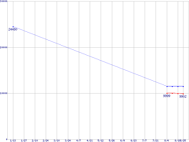 | LGA 775 (FSB 800MHz,L2 1MB,Hyper-Threading,EM64T対応)の最安値推移 | | | (2006年1月13日~2006年8月25日) |