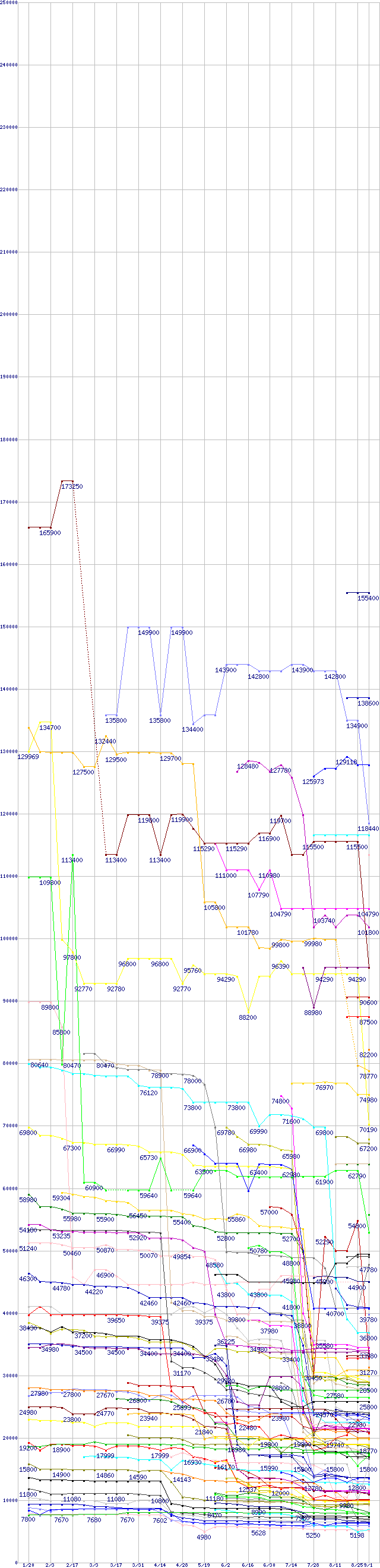 ※製品名をクリックすると個別のグラフを表示します ※点線部は販売店が確認できなかった、または調査データがないことを示します |