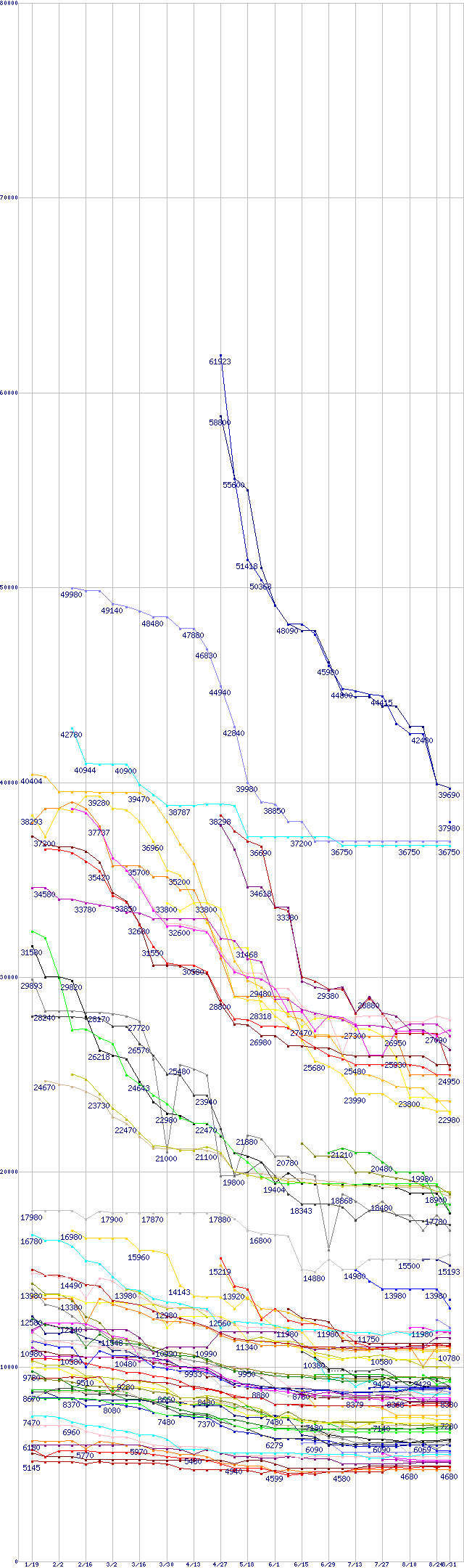 [前グラフ]:WD Caviar SE (7200rpm,Serial ATA II,8MB)の最安値推移