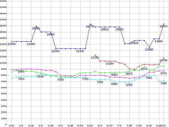 メモリ主要製品の最安値推移