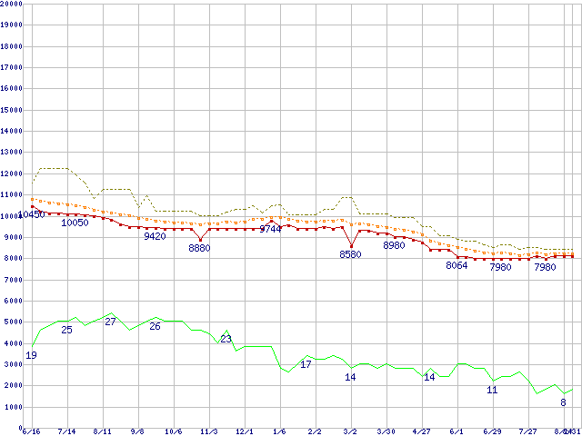| 6L200P0 (200GB,8MB)の価格推移 | | | (2005年6月16日~2006年8月31日) |